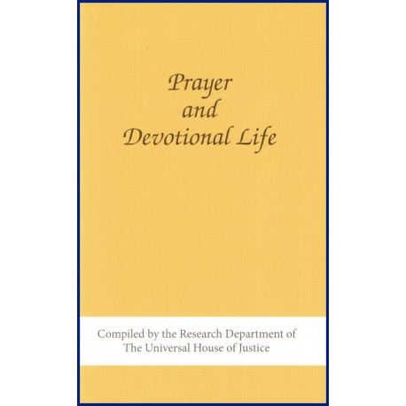 Compilation sur la prière et la vie dévotionnelle préparée par le département de recherche de la Maison universelle de justice. Cette compilation contient des extraits des écrits de Baha'u'llah, du Bab et de 'Abdu'l-Baha, ainsi que des lettres de Shoghi Effendi et de la Maison universelle de justice. La compilation couvre les sujets suivants : le pouvoir de la prière ; la communion avec Dieu ; l'esprit et la forme de la prière ; le rôle de la méditation ; la prière, la méditation et l'action ; les prières obligatoires ; le caractère dévotionnel de la communauté ; les prières et la guérison ; l'importance de la mémorisation ; l'objet de notre dévotion ; et d'autres passages.
