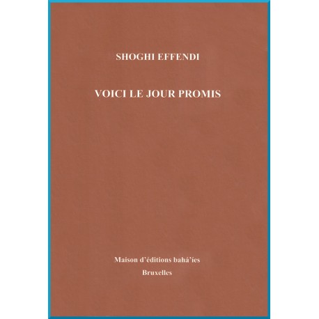 Sa mission est de proclamer que, pour l’espèce humaine, les stades de la petite enfance et de l’enfance sont du passé, que les bouleversements liés au stade actuel de son évolution, celui de adolescence, la préparent lentement et péniblement à l’âge adulte et annoncent la venue de l’Âge des ages, qui verra les glaives transformés en socs de charrue, le royaume promis par Jésus-Christ établi, et la paix sur terre définitivement assurée. Bahá’u’lláh ne revendique pas le caractère définitif de sa propre révélation, mais précise plutôt qu’une plus large part de la vérité que le Tout-Puissant l'a chargé de transmettre à l'humanité, à un moment si critique de sa destinée, sera dévoilée lors d'étapes ultérieures dans l'évolution constante et perpétuelle de l'humanité.' Extrait préface de Voici le jour promis.