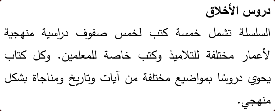 Le livre contient des leçons sur différents sujets, ainsi que des versets et des prières à mémoriser.