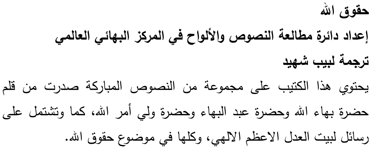 Le Droit de Dieu, Huqúqu'lláh en arabe