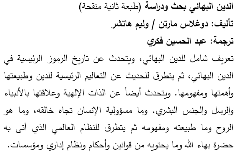 Ad-Dín Al-Bahá’i-bahth wa derassah-La foi bahá'íe, la religion mondiale émergente en arabe
