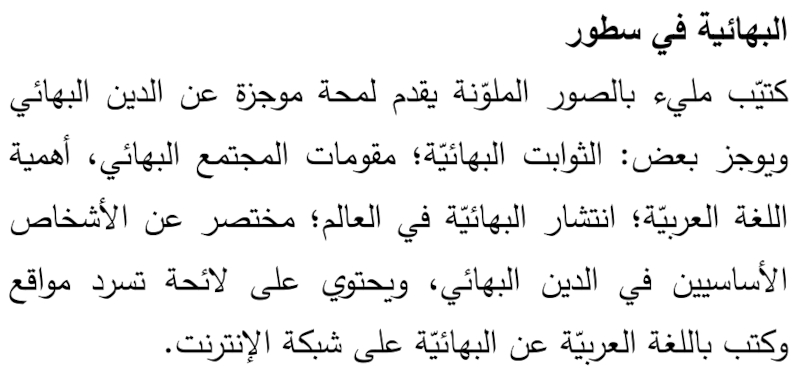 Al-Bahá’iyyah fi Sutúr- La foi Bahá'ie ,Brochure illustrée en arabe
