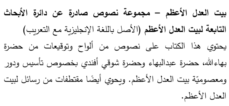Beit al-' Adle al-A'zam-La Maison universelle de justice en arabe/anglais