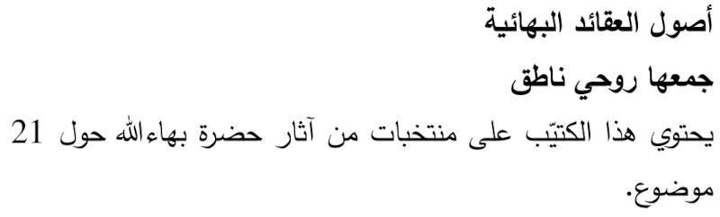 Usúl al-‘Aka’id al-Baha’iyya, Les fondements de la foi bahá'íe en arabe