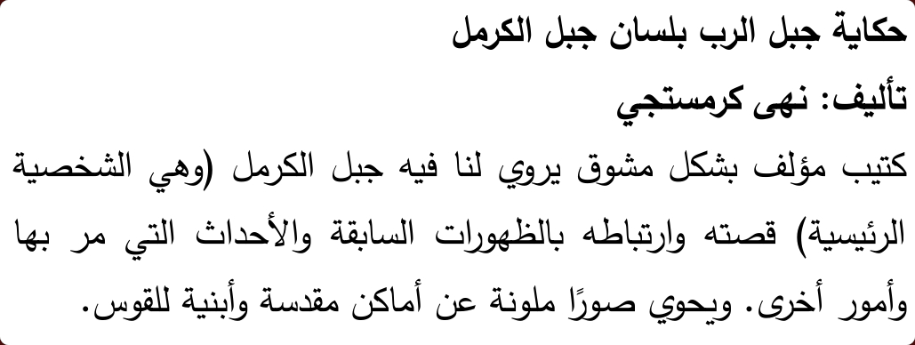 Hikayat Jabal Al-Rub Bilisan Jabal Al –Karmel - Histoires du Mont Carmel et des révélations en arabe